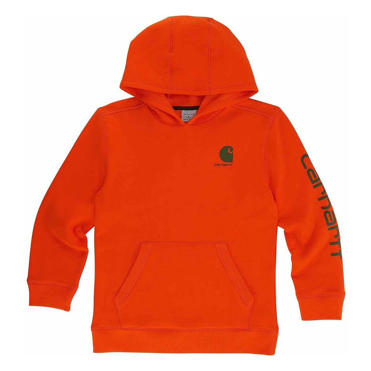 - Carhartt ‘C’ screen-print on chest; Carhartt logo screen-print on sleeve