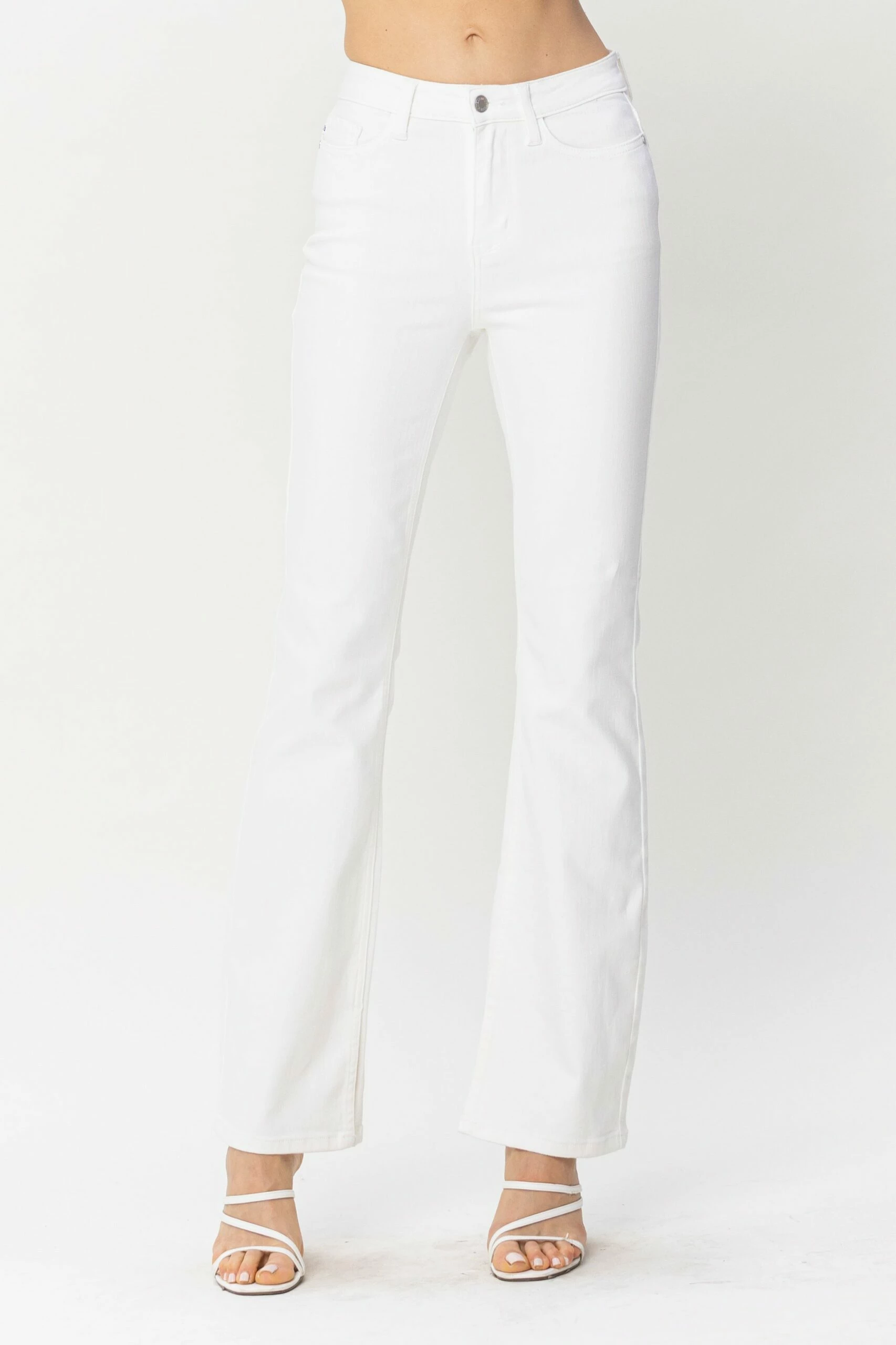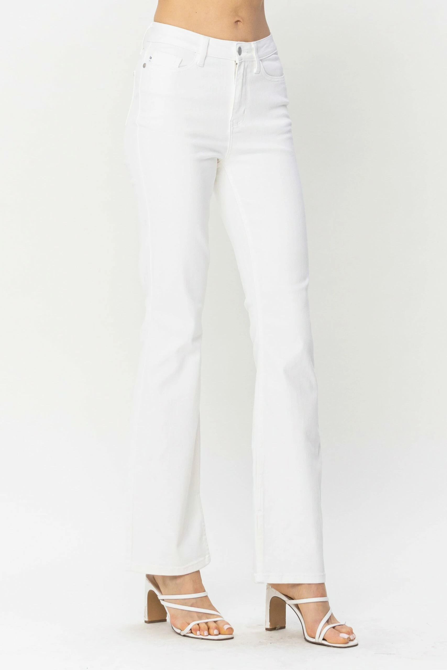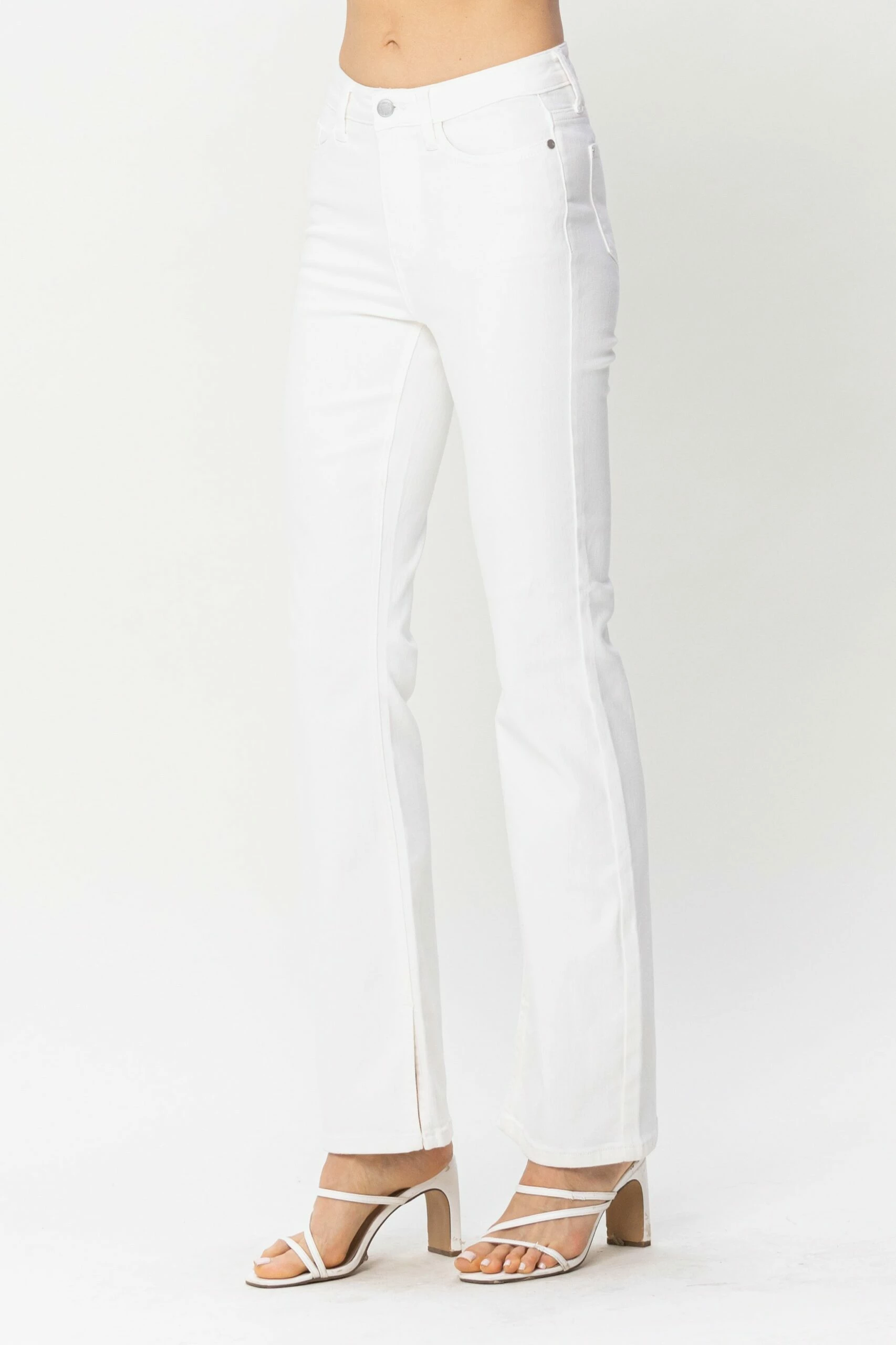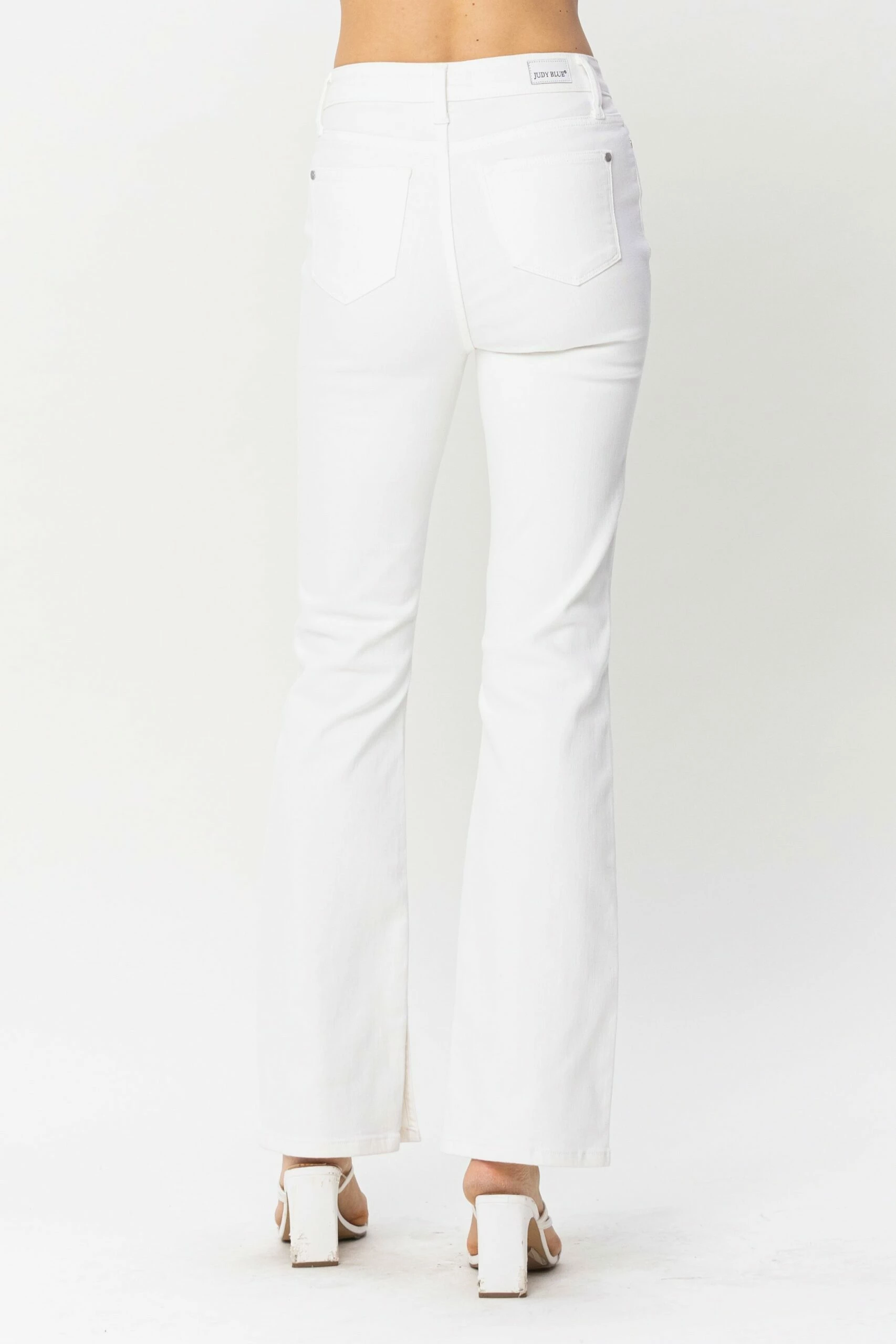 Ladie Judy Blue Midrise Bootcut in Pure White with Hem SlitÂ