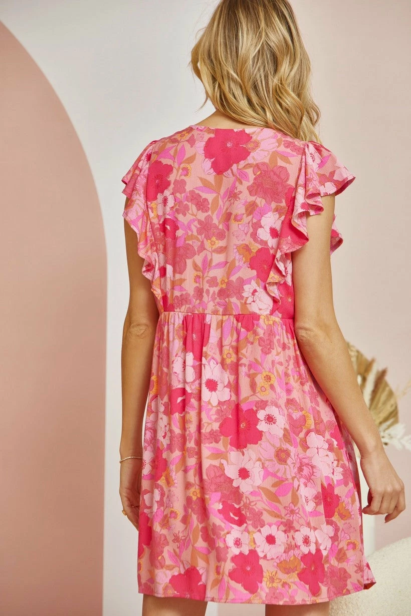 This dress is effortless and charming! Floral printed dress features v neckline, flowy bodice with full lining. Woven, non sheer.