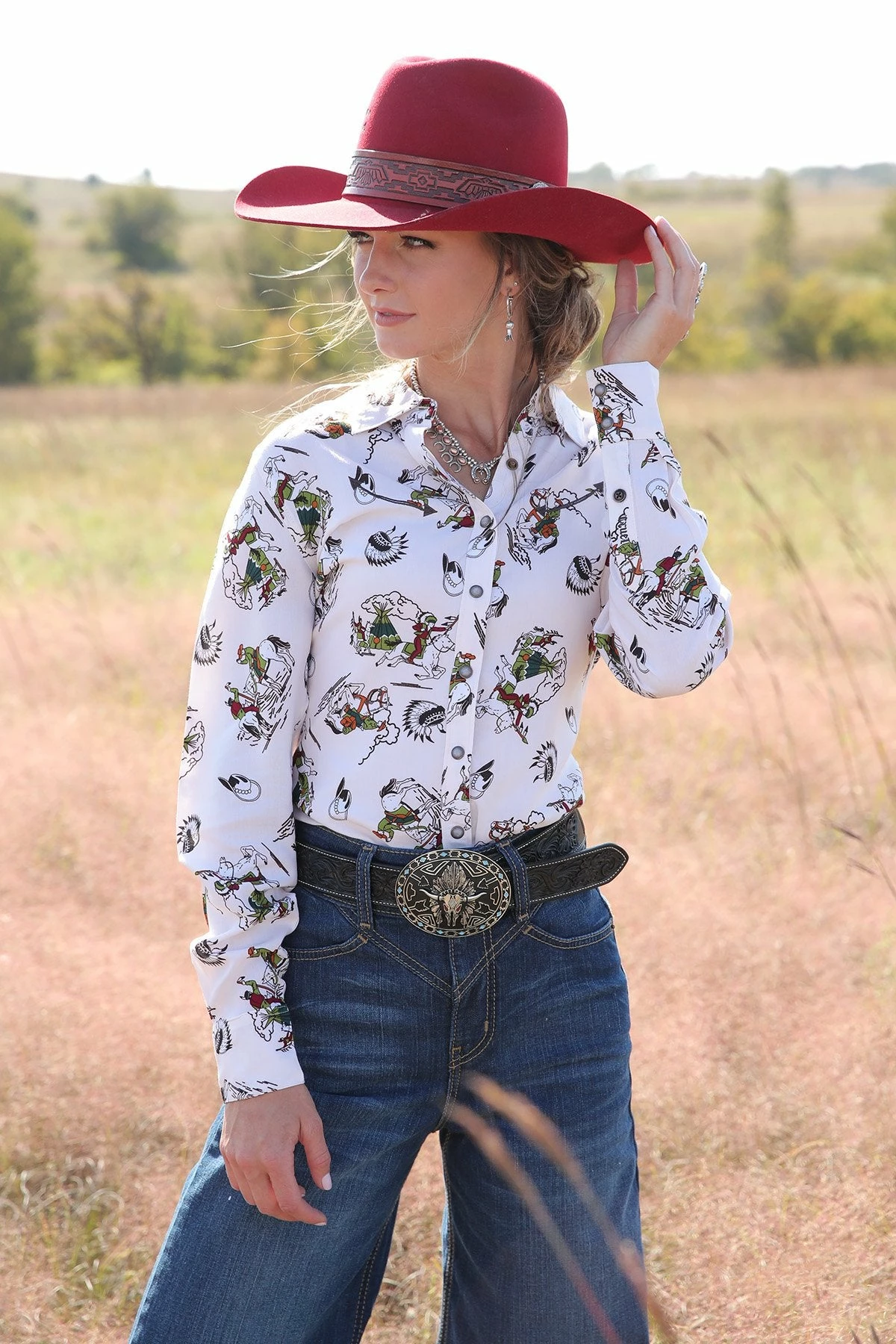 Ladies Cinch Button Down Cream Western Shirt – CTW7417001