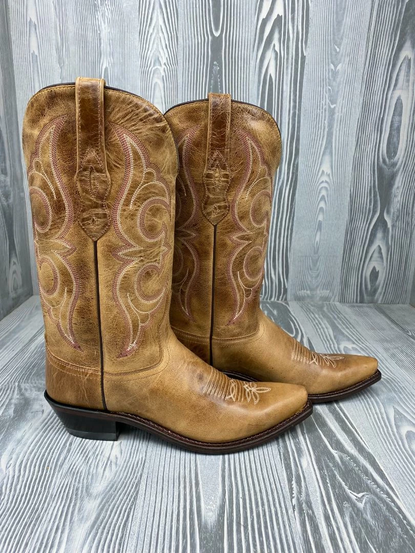 SKU: BMLNC 6608358473867 Categories: Footwear, Old West Tags: Fashion, Fashion Boots, Ladies Boots, Ladies Fashion, Ladies Leather sole, Leather Sole, Old West, Snip Toe, Tan Boots