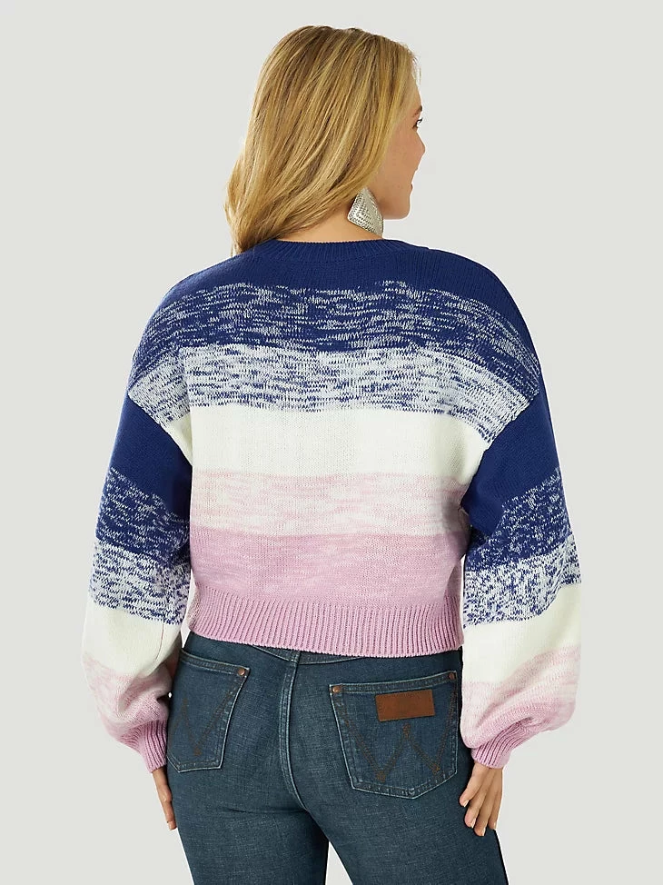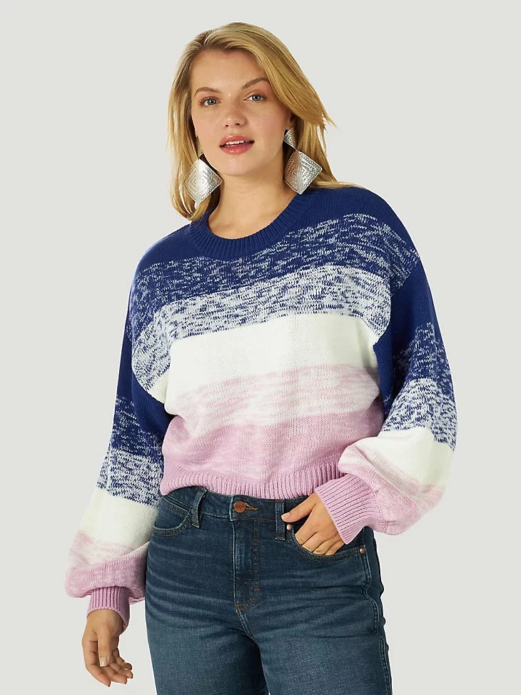 You never needed permission to cozy up, but here’s a perfect excuse for the season ahead. The women’s Wrangler Retro® balloon sleeve heather sweater makes your comfort a priority without any compromise on style. It features a heathered look for a well-worn feel from the moment you try it on. Colorful stripes are sure to make any outfit you wear this fall pop. Its balloon sleeves add a subtle amount of volume and cropped silhouette is a match made in heaven for your favorite high-rise jeans.