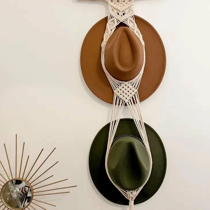 Macrame hat hangers are made with soft, dye-free cotton cording that softly holds hats in place against the wall. When you take the hats off the hanger to wear, it still has beautiful boho appearance!