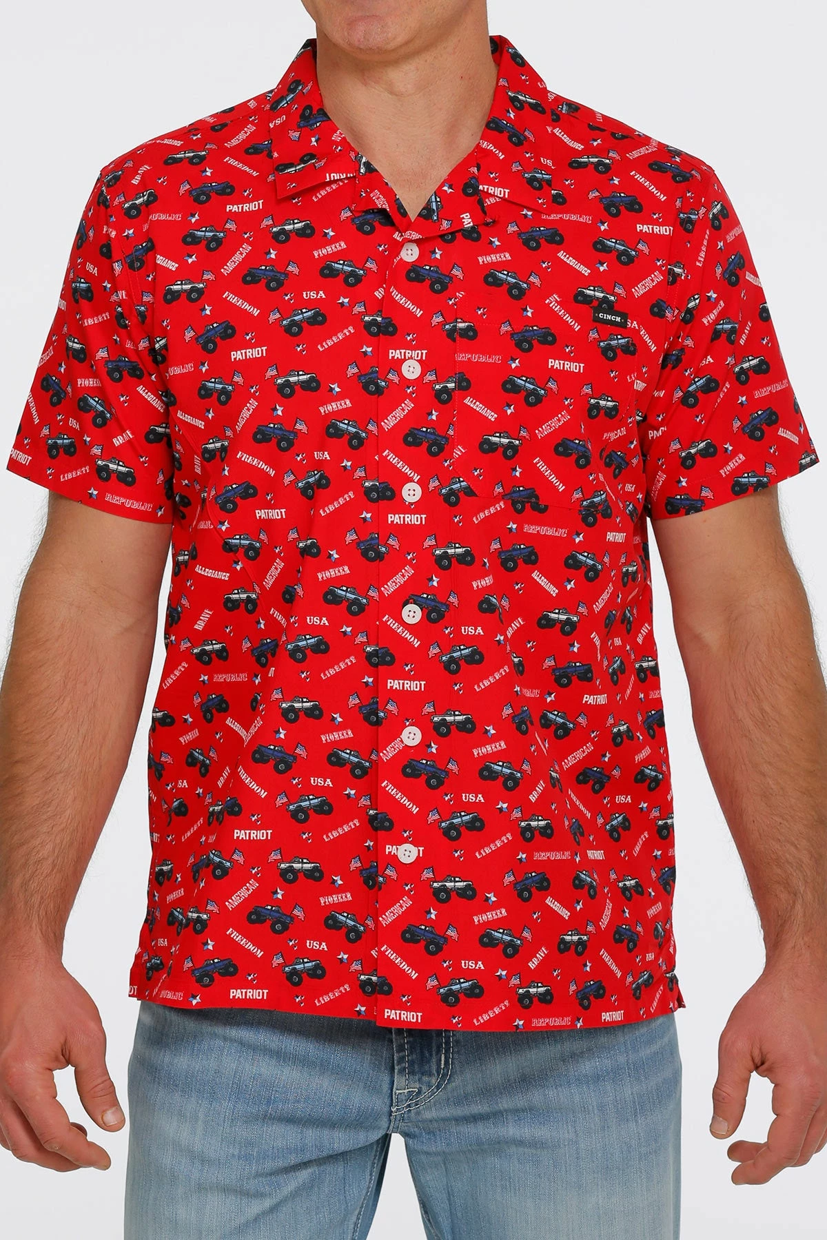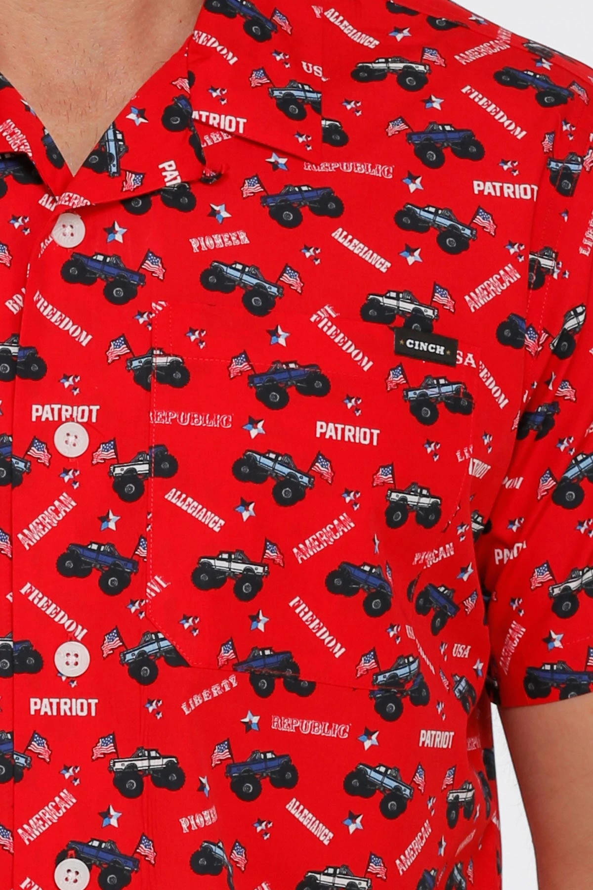 Men’s Cinch Patriotic Truck Print Short Sleeve Camp Shirt – MTW1401005