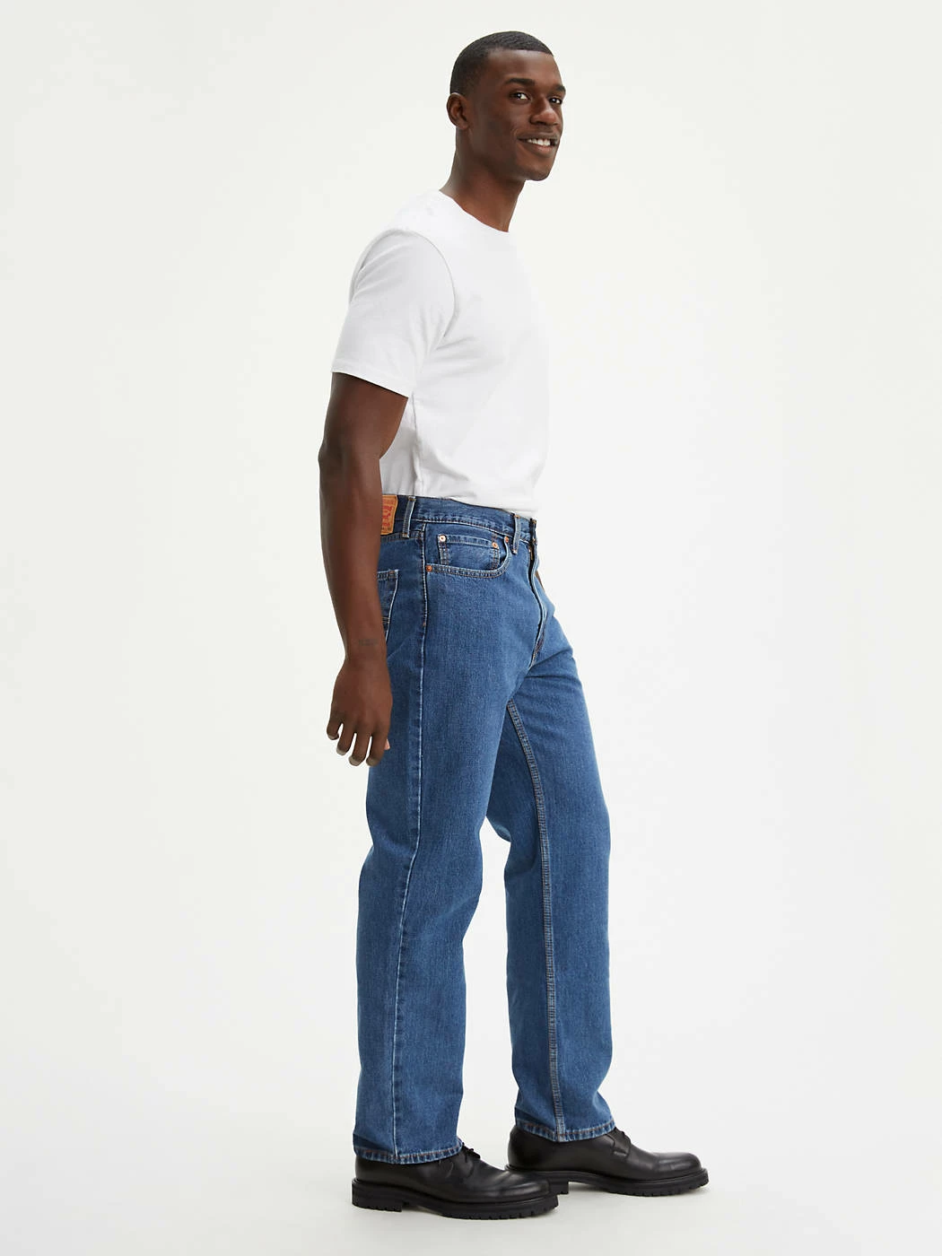 Relaxed fit jeans with more room than Levi 501. Slightly baggy, larger in the seat and thigh.  Style # 005504891