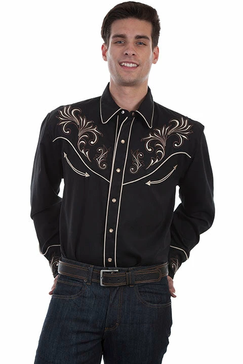 This Scully long sleeve shirt is for the man that likes to make a statement when he goes out. It features an elaborate floral embroidery on front and back yokes.