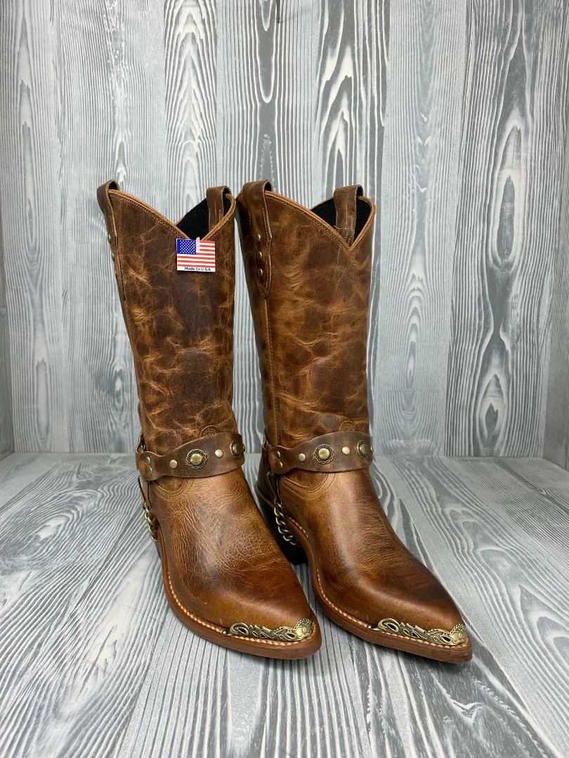 Women’s Sage 11″ Tan Distressed Cowhide with Ankle Bracelet – 4528Â Â